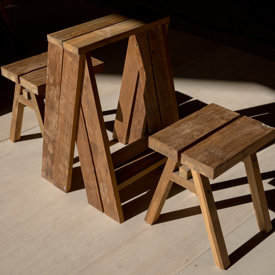 Back in 2011, Ishinomaki Laboratory started as a small community workshop in Japan — a way to help people rebuild after the Great East Japan Earthquake. They started by holding DIY workshops for local residents and helping restore— rebuilding not just structures, but hope and a sense of community. From the beginning, Ishinomaki Laboratory believed that “doing it yourself” doesn’t mean doing it alone. Making a community strong is just as vital as making strong furniture. Made in Local initiative began with a simple idea — to bring Ishinomaki Laboratory’s designs and philosophy into new contexts through collaboration with local makers, materials, and markets. One of the selected partner is CushCush in Bali Indonesia. Staying true to the concept of ‘Made in Local’, the Ishinomaki Laboratory furniture is crafted by CushCush, using locally sourced reclaimed Teakwood from old Javanese ‘Joglo’ and other wooden houses.