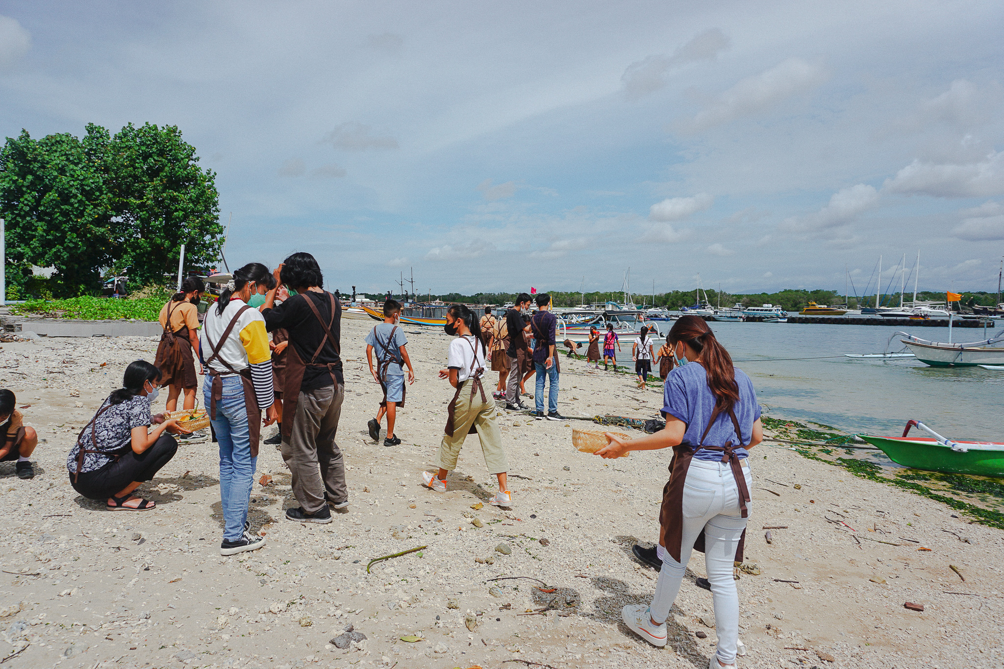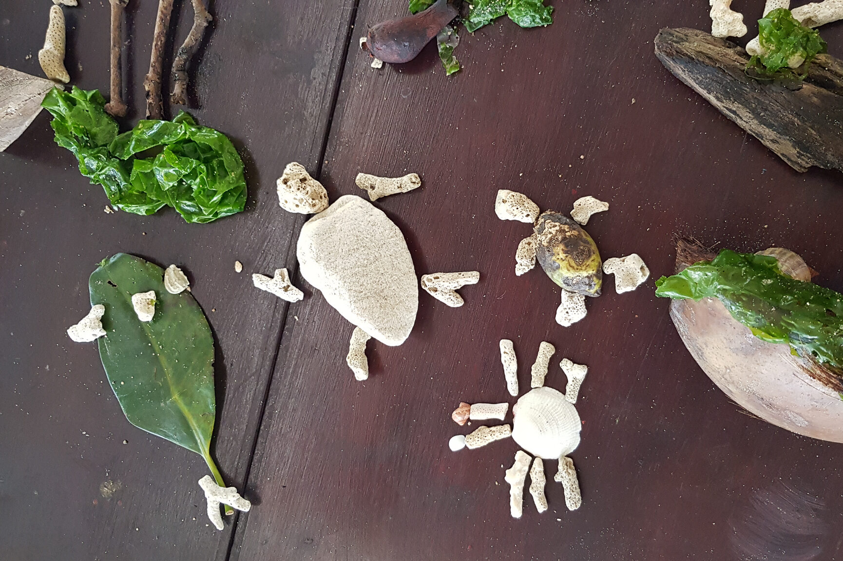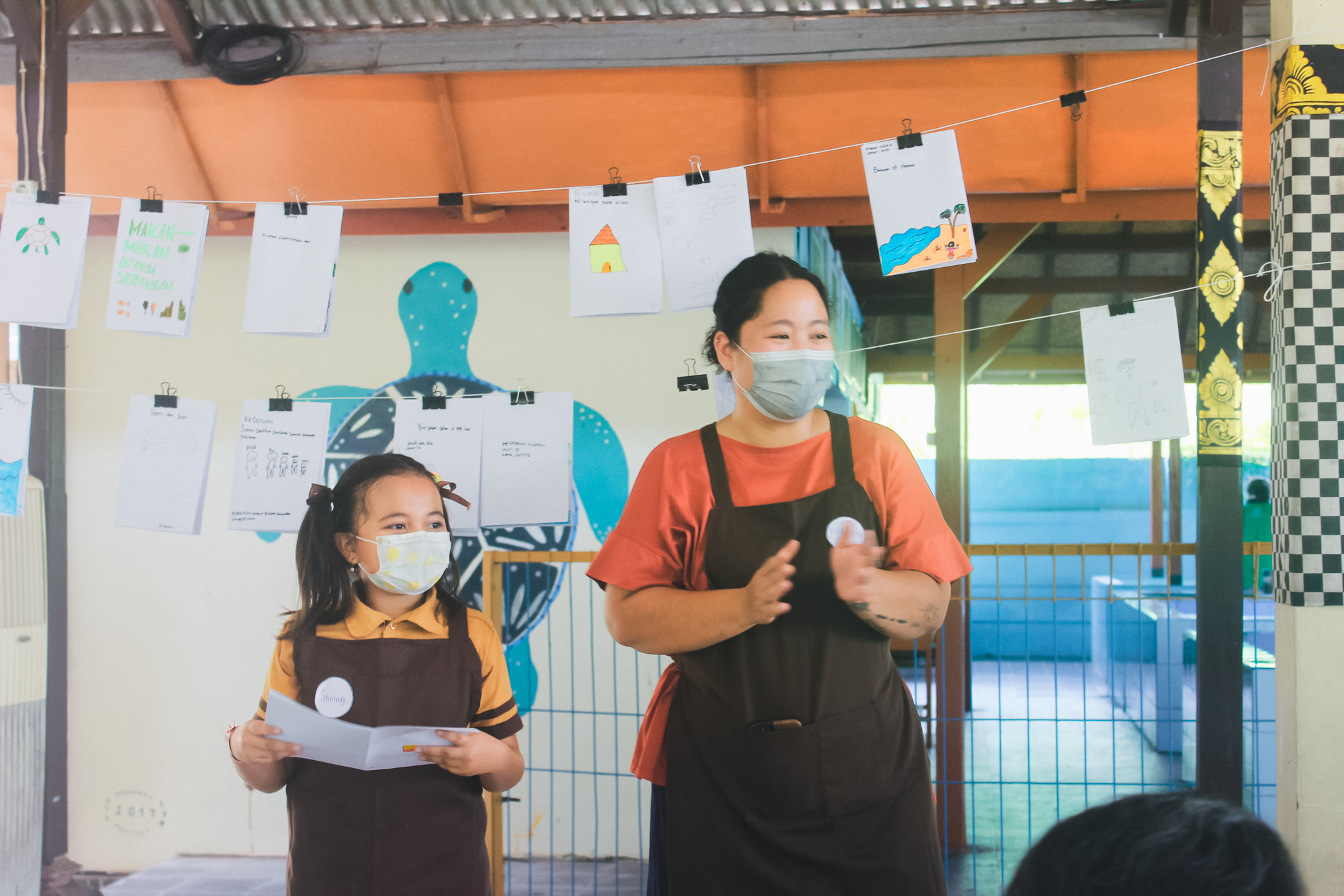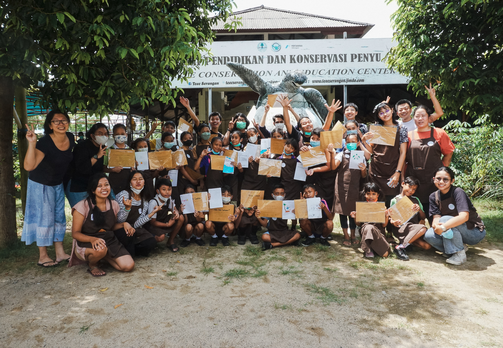 After being postponed due to COVID-19 regulations, the long-awaited fourth workshop session was finally held in the southern part of Bali. Twenty students from SDN 2 and SDN 3 Serangan gathered at Turtle Conservation and Education Centre on Serangan Village, Denpasar. Together with our invited artists Jong, Juli and Irene, the children spent the sunny morning creatively by playing games and writing their ideas into stories. There were plenty of things to do at Serangan! After everyone finished writing and drawing, we all walked to the beach nearby to hunt for items found at the beach like seashells, corals, seaweeds and leaves to create collage arts together. What a fun-filled day we all had at Serangan that day!