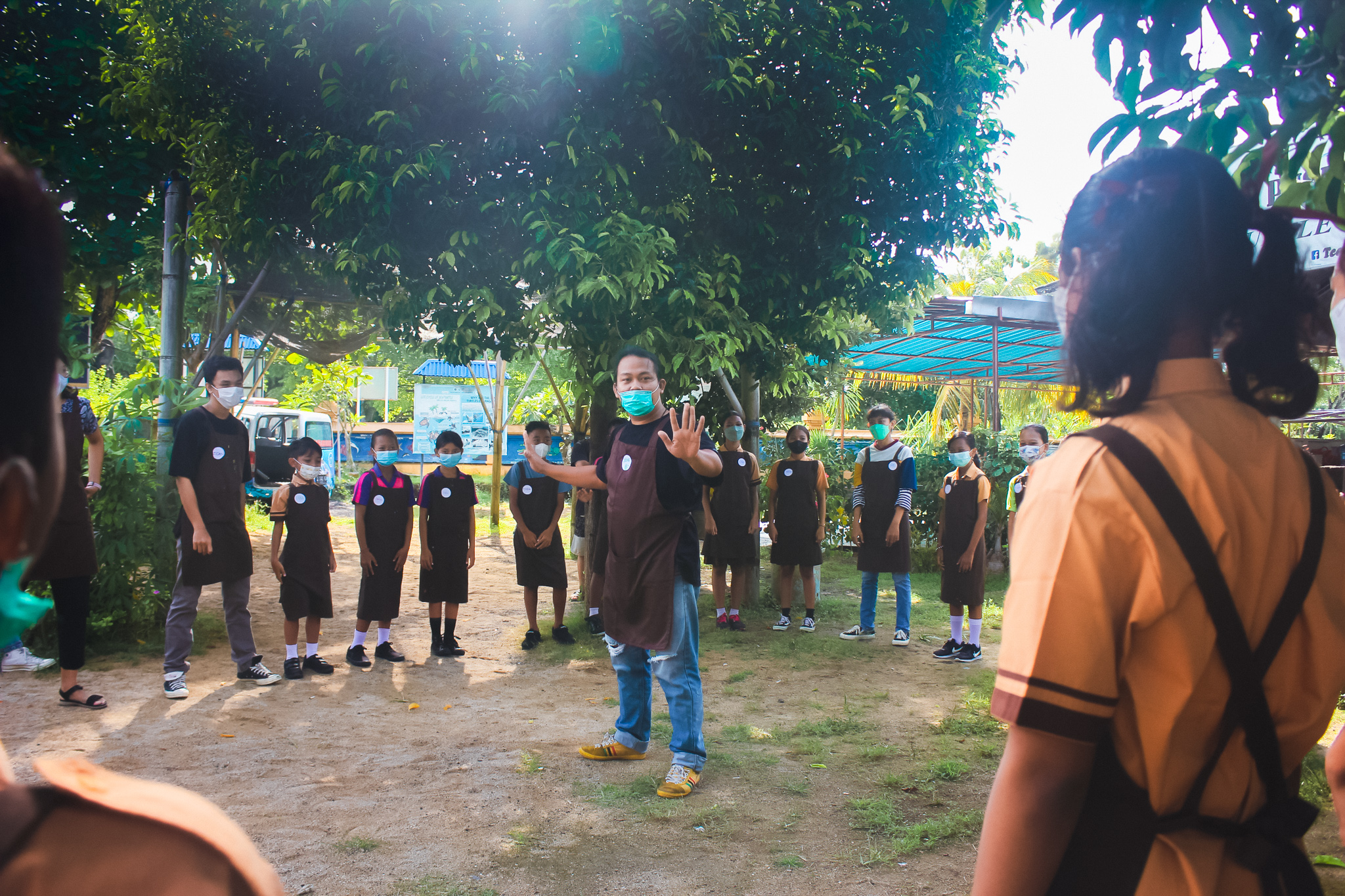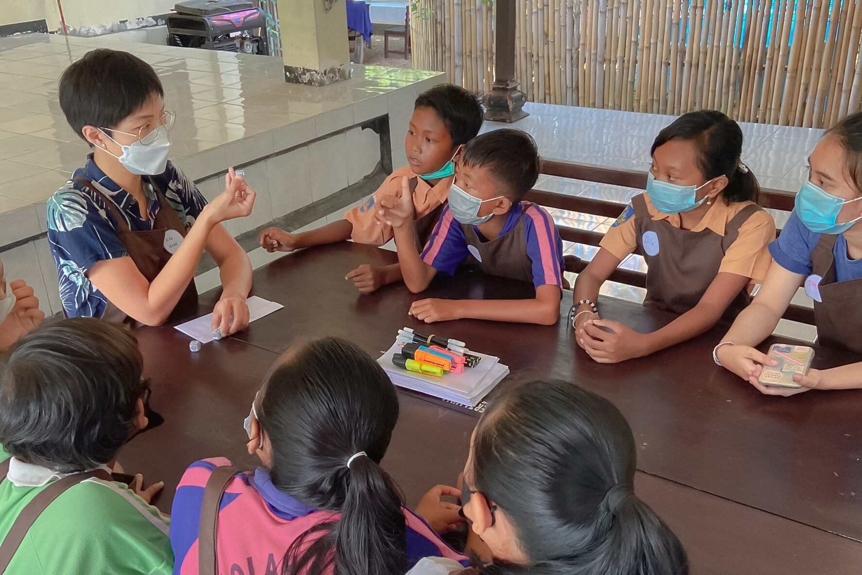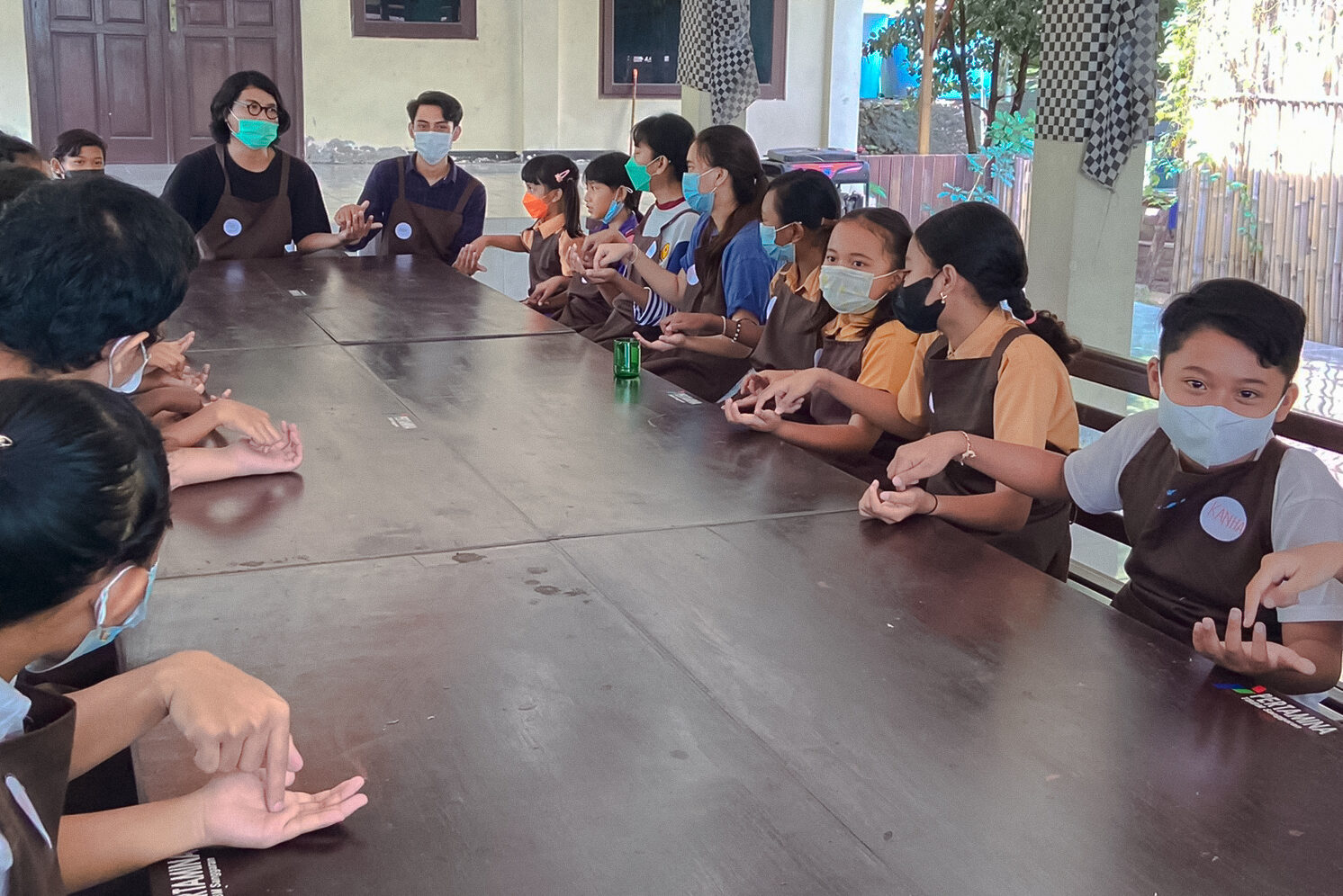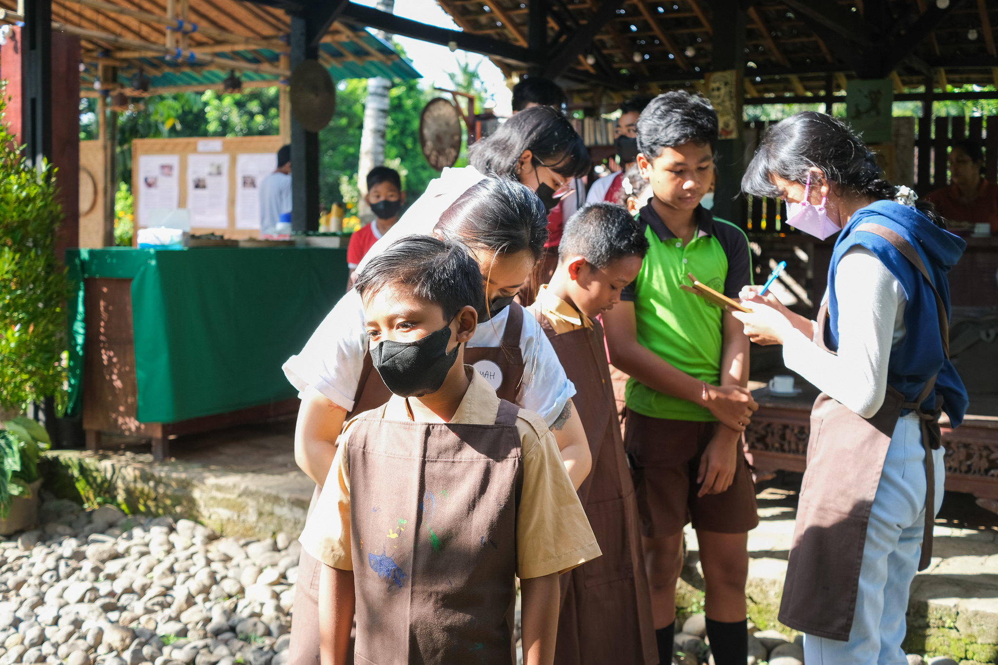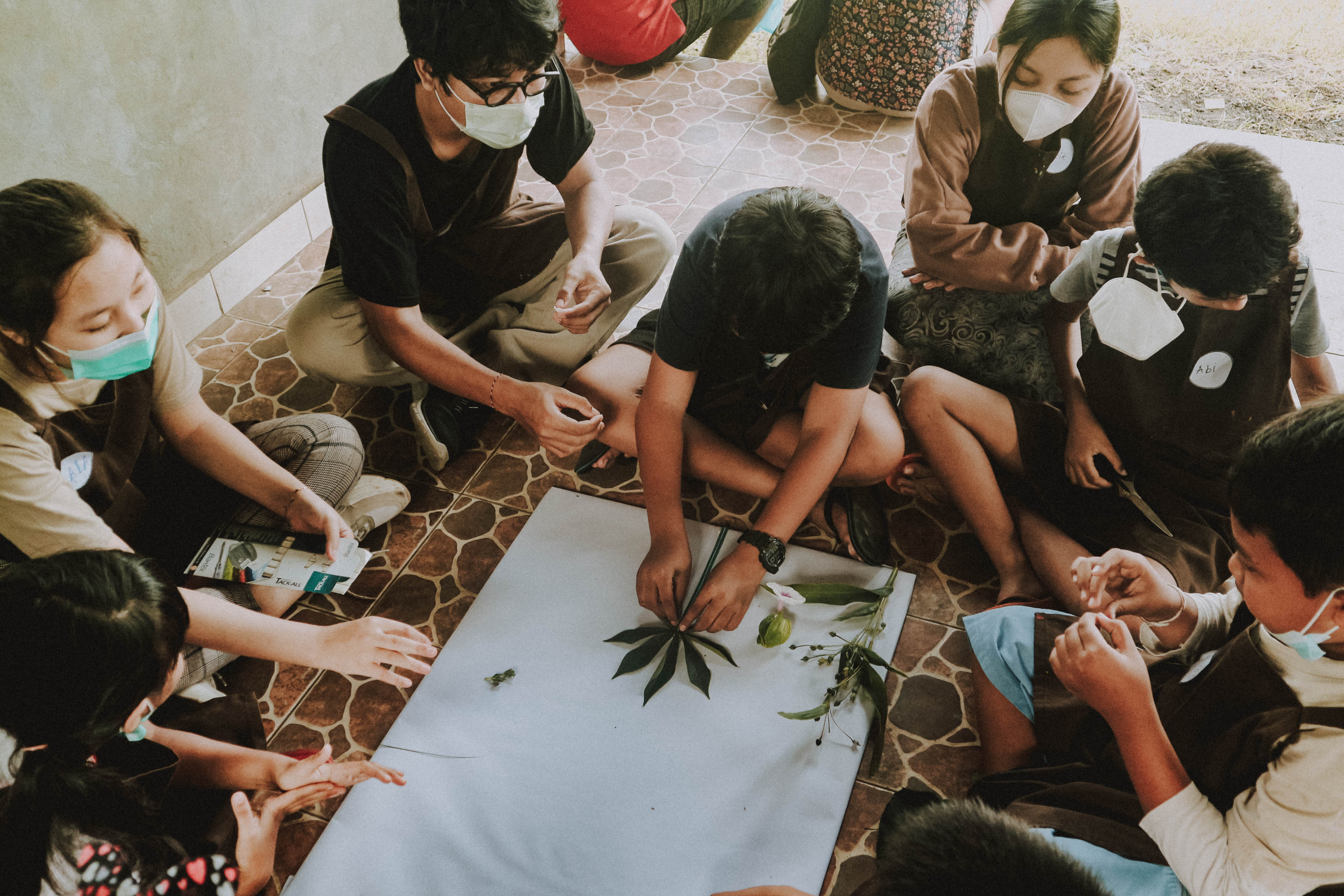 Our workshop continued to Candikusuma Village, Jembrana. In this fifth session, Students from 3 public elementary schools participated in various fun activities. The students each shared their short stories, and we got to learn about the village too. From coconut trees to marigold flower beds, Candikusuma represents the beauty of a Balinese village. A lot of taro plants also can be found in the village, and we used the leaves as a canvas to create water droplets collages.