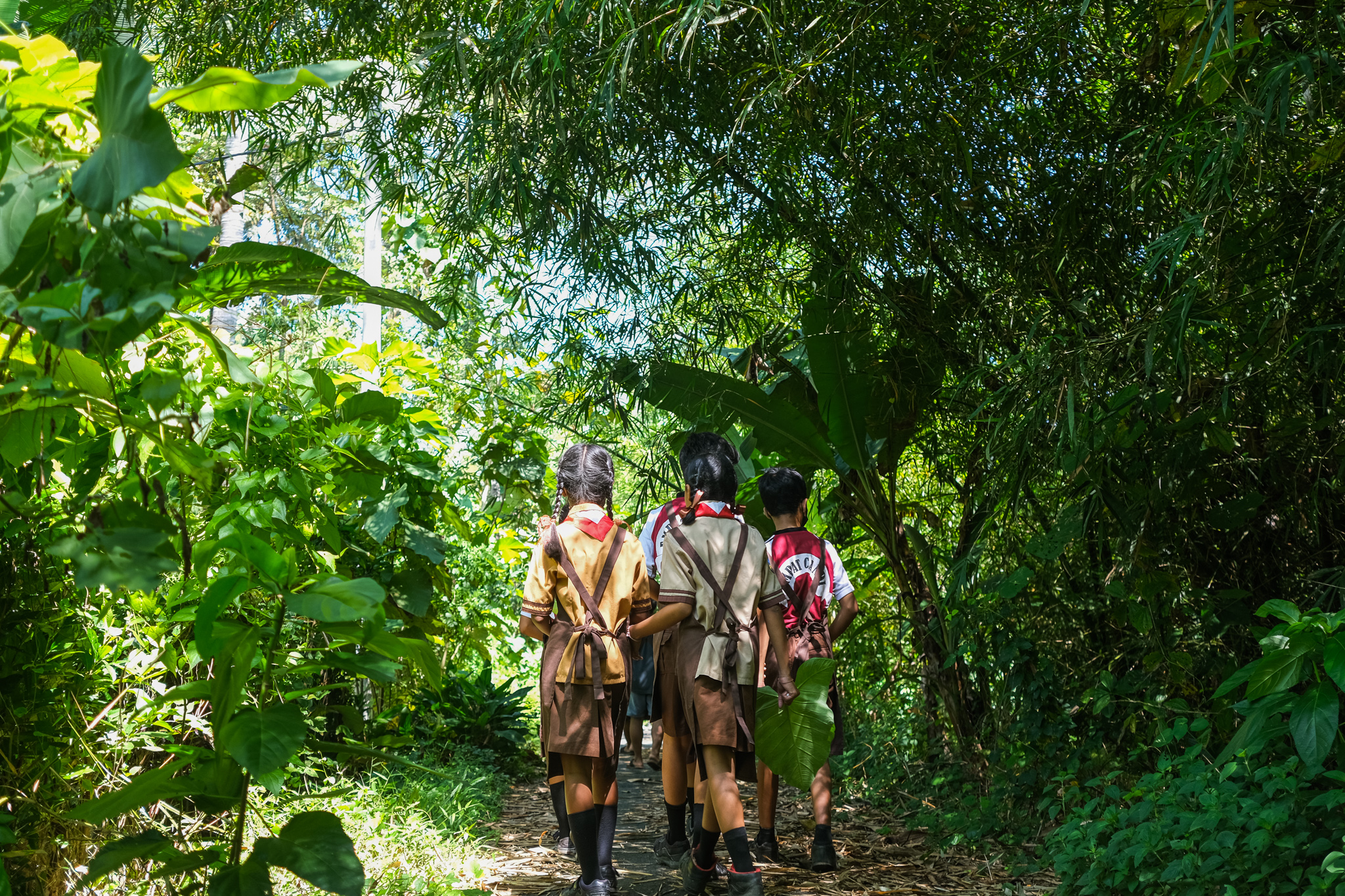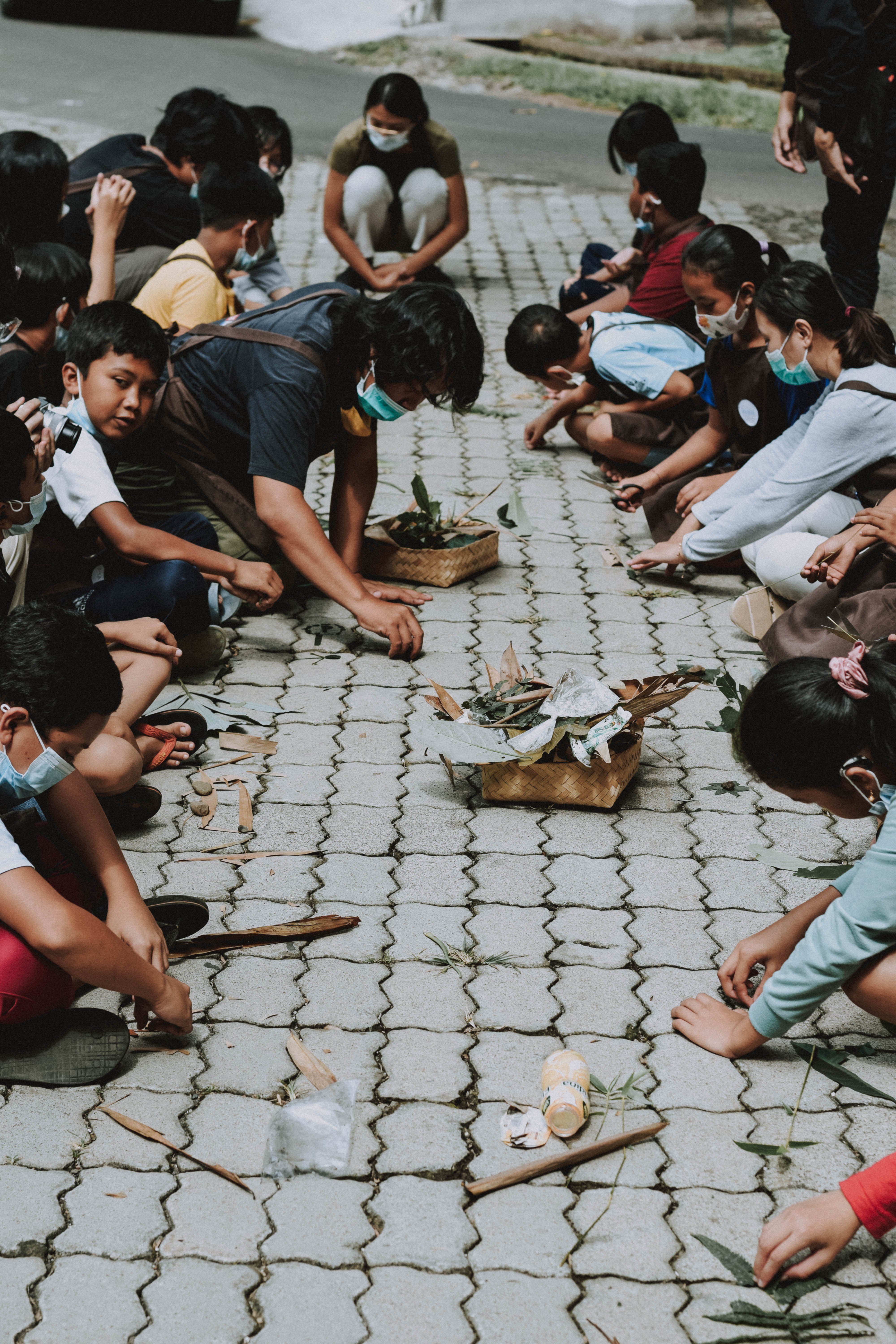 The third workshop continues in Penglipuran Village, Bangli, one of the best well-preserved traditional villages in Bali. Our loud and fun “creactivities” with the 15 children at Banjar Adat attracted tourists’ attention. Lastly, the best thing to do in Penglipuran village! We explored one of its iconic sites, the charming bamboo forest, while hunting for recyclable treasures to make art collages.