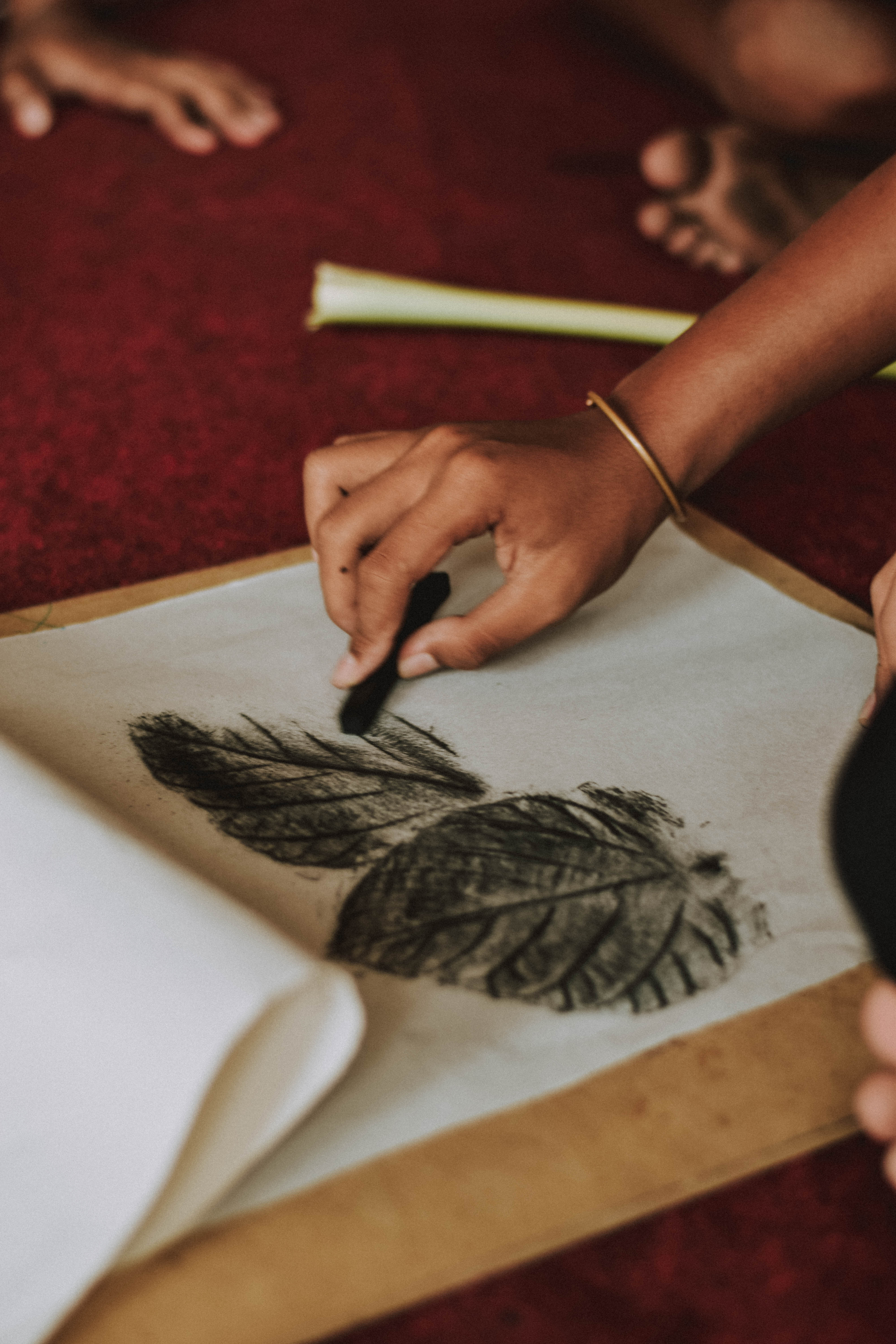 The second workshop took place in Banjar Pekandelan at Batuan village, Gianyar which is famous for its arts and handicrafts. With 18 children from Sanggar Batur Ulangun (a local Batuan style painting community), Sunday was spent creatively. The participating children were very excited, especially during charcoal drawing and rubbing session creating compositions using texture and forms of locally found leaves, flowers and found objects, since art is something they are passionate about.