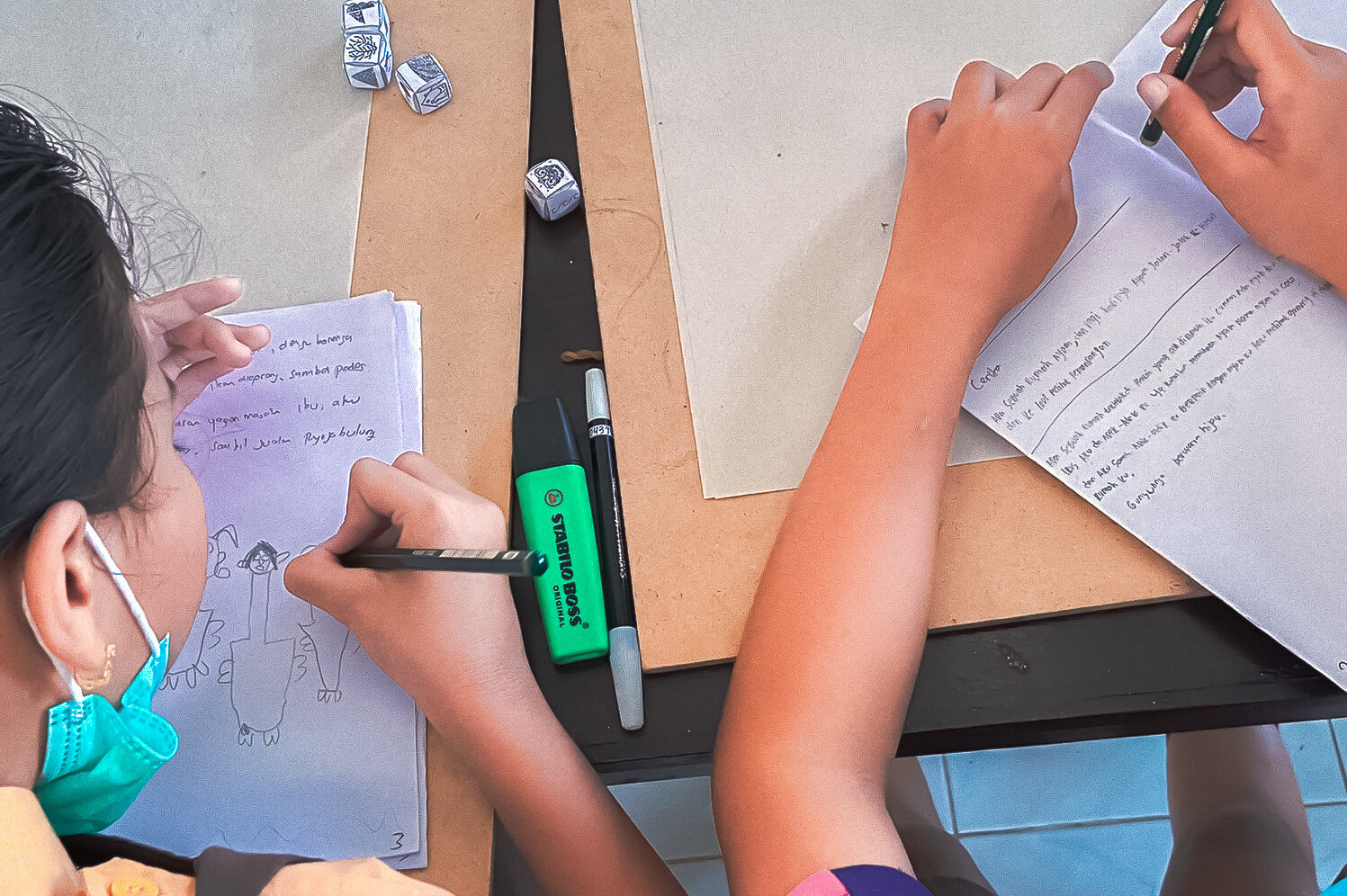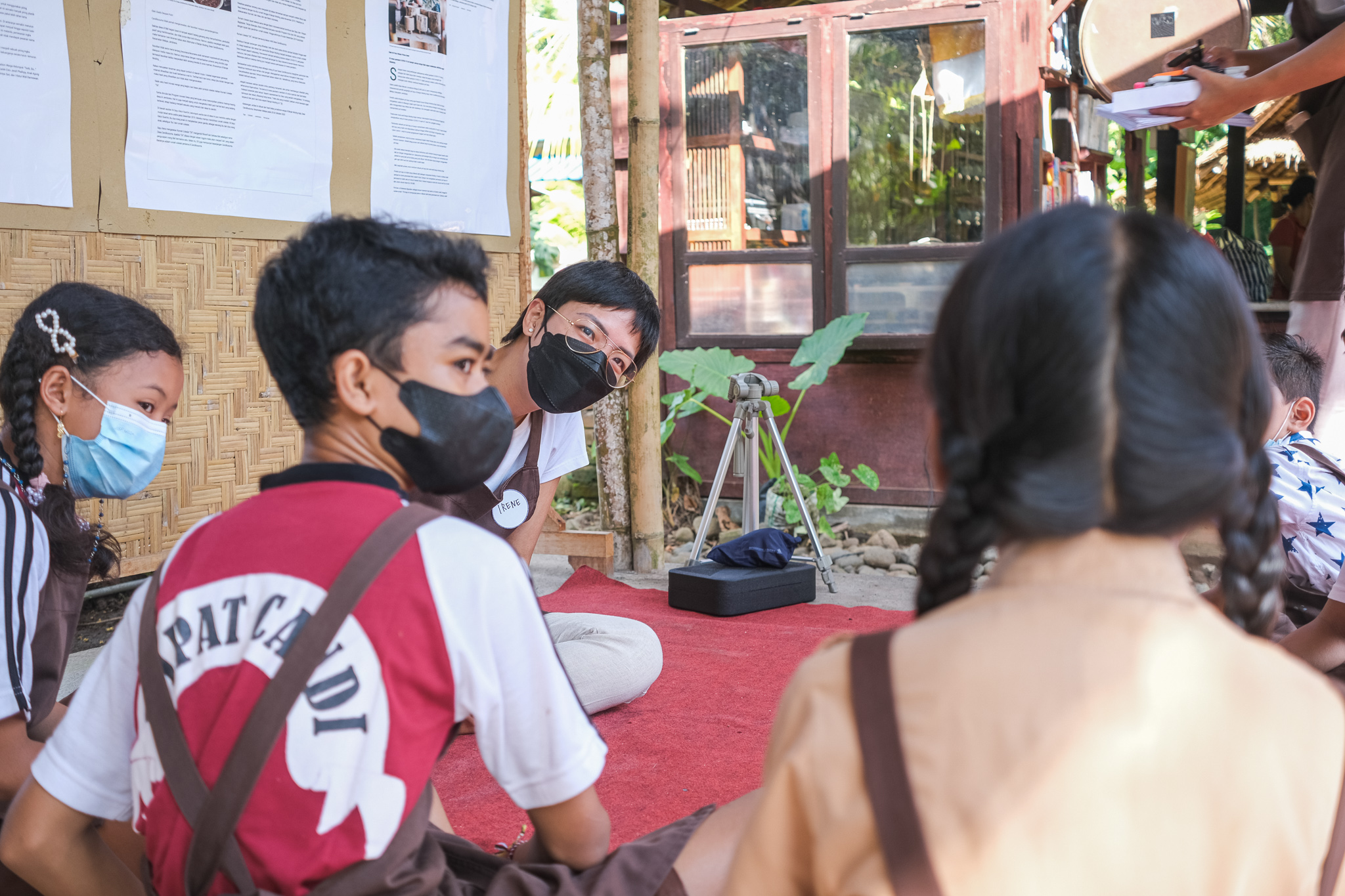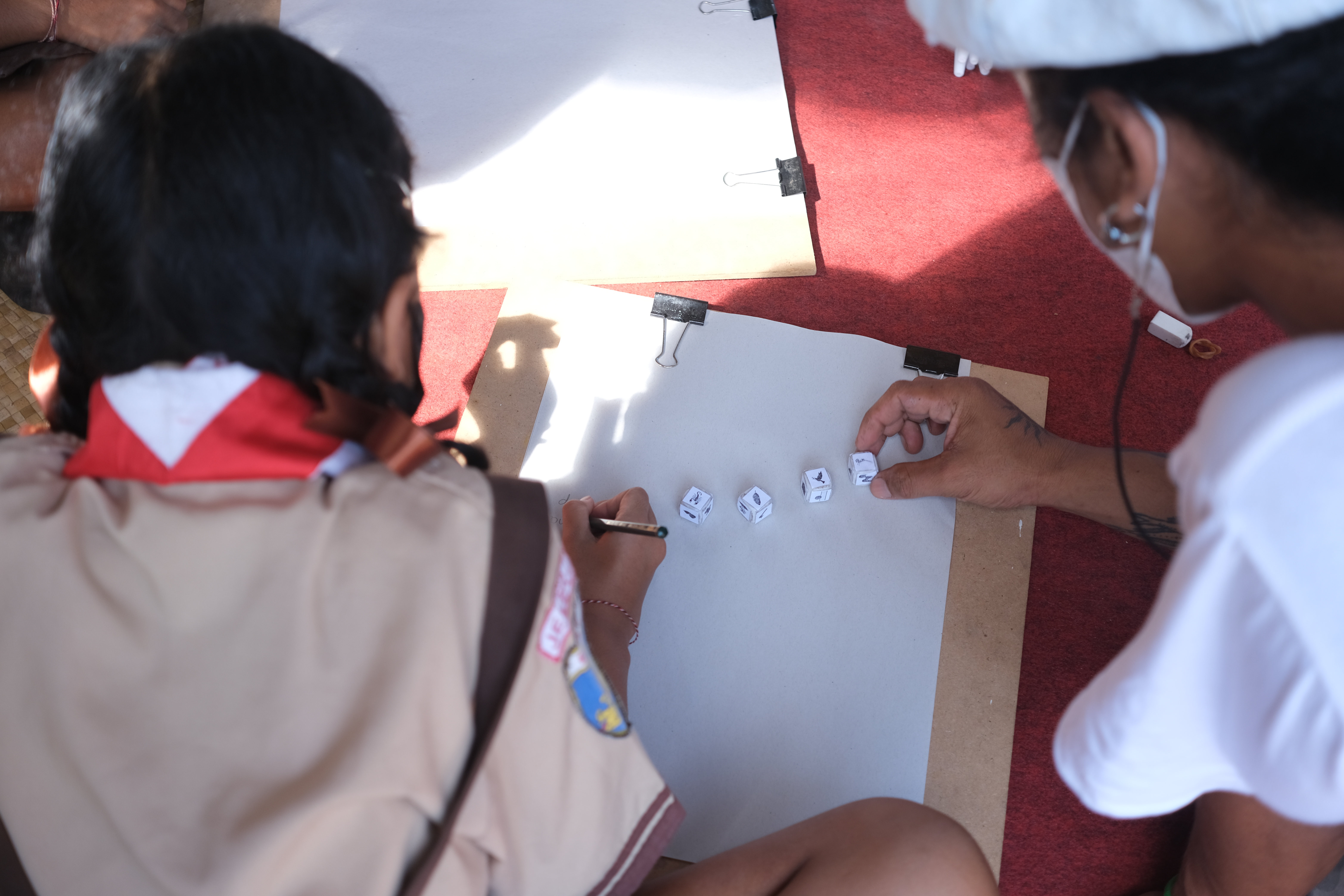 Presenting our 4th theme “Tell Me Tales”, CFC aims to discover and share local stories from the children of different villages. This year’s invited artists feature one collage visual artist, Irene Febry, and two multidisciplinary artists, Juli Sastrawan and ‘Jong’ Santiasa Putra to engage with children in creative workshop sessions that are based on story writing — from rolling an illustrated dice to inspire the children making their own short stories, drawing their own characters with LagiLagi DIY charcoal, to scavenging for materials in their surroundings to make art collages.