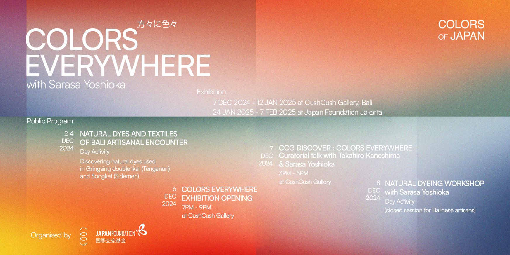 CCG in collaboration with the Japan Foundation Office in Jakarta and CushCush Bali present the first edition of the Colors of Japan programme, “Colors Everywhere”.