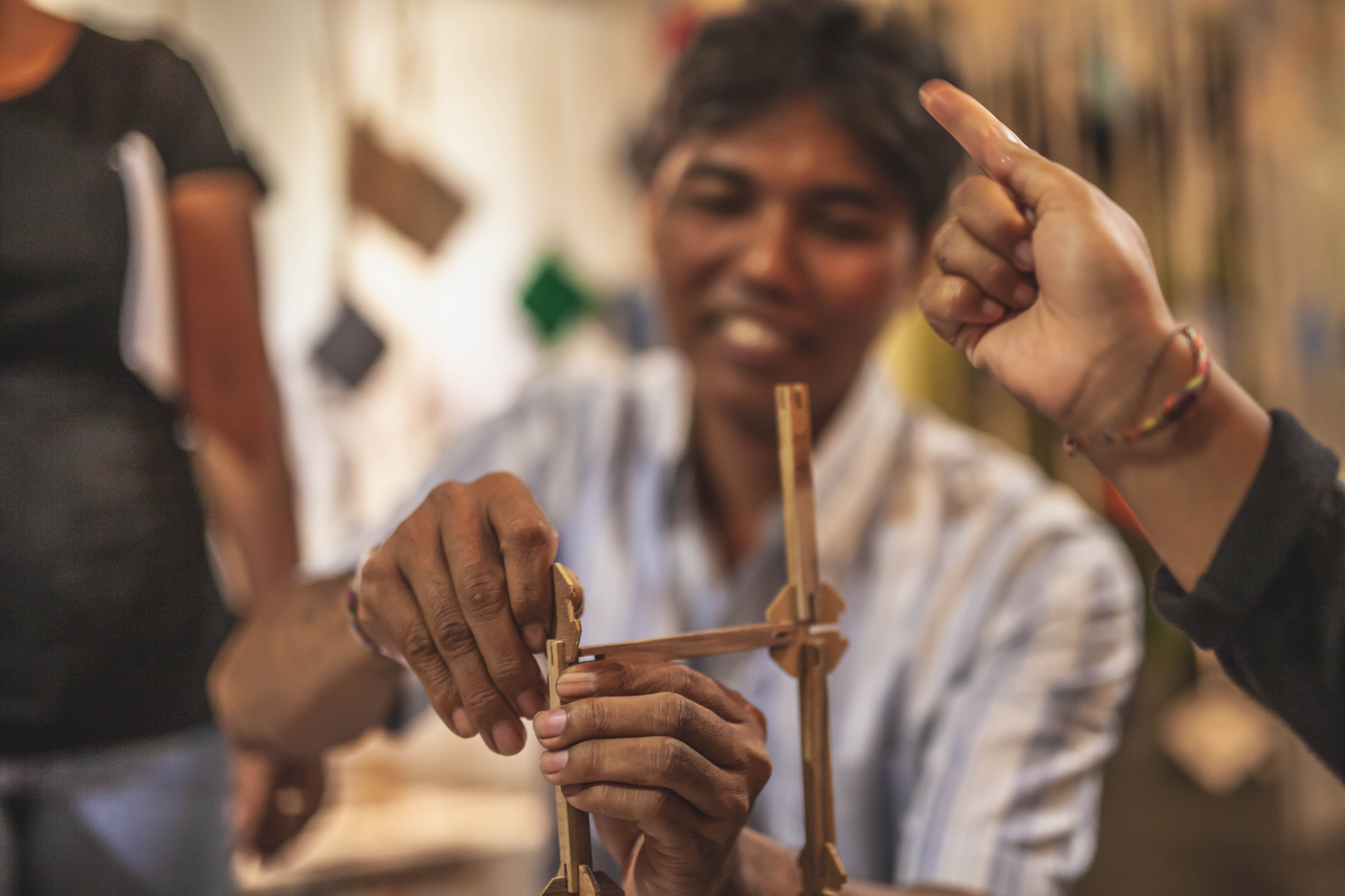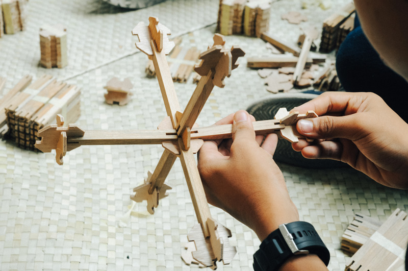 Slide & Slot play kit is made from upcycled teakwood and plywood. you can make whatever you want, whenever you desire! Inspired by the beauty and efficiency of modular architecture, Slide & Slot is the official merchandise from CFC2019: Hands On! workshop in collaboration with Benson Saw & Design Stream Studio based in Kuala Lumpur, Malaysia whose team always strive to provide the best solution, through flexible and adaptable design methods. Design Stream has worked for many key projects in Asia and Europe, including hotels, restaurants, public spaces, and residential projects.